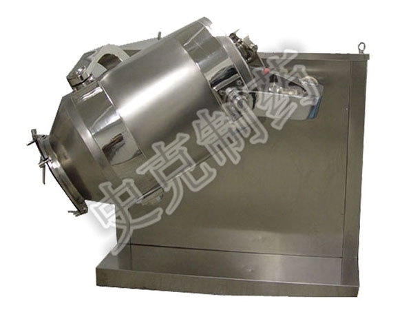 三維運動混合機由機座、傳動系統(tǒng)、電器控制系統(tǒng),多向運動機構(gòu),混合桶等部件組成。與物料直接接觸的混合桶采用不銹鋼材料制造,桶體內(nèi)外壁均經(jīng)拋光。運行中,由于混合桶體具有多方向運轉(zhuǎn)動作,使各種物料在混合過程中,加速了流動和擴散作用,同時避免了一般混合機因離心力作用所產(chǎn)生的物料比重偏析和積累現(xiàn)象,混合無死角,能有效確?;旌衔锪系睦硐胄Ч?。